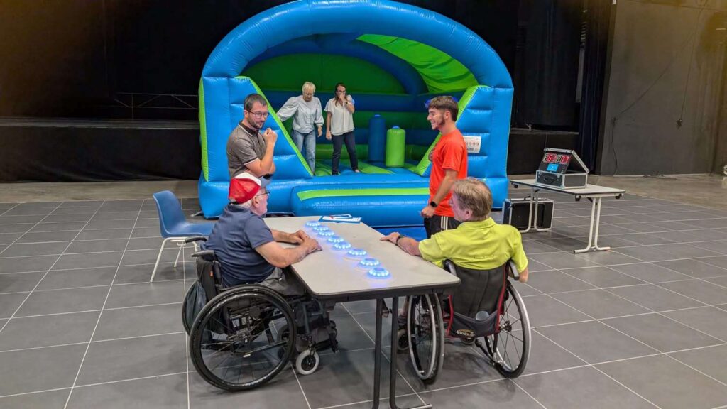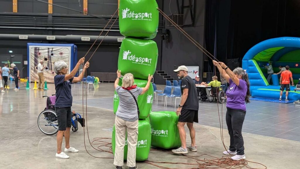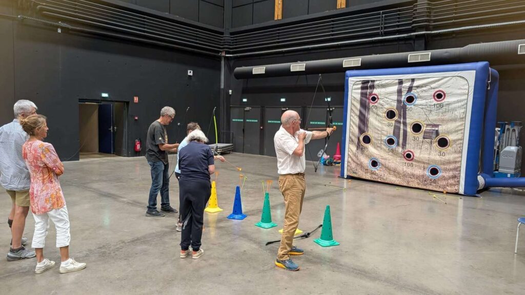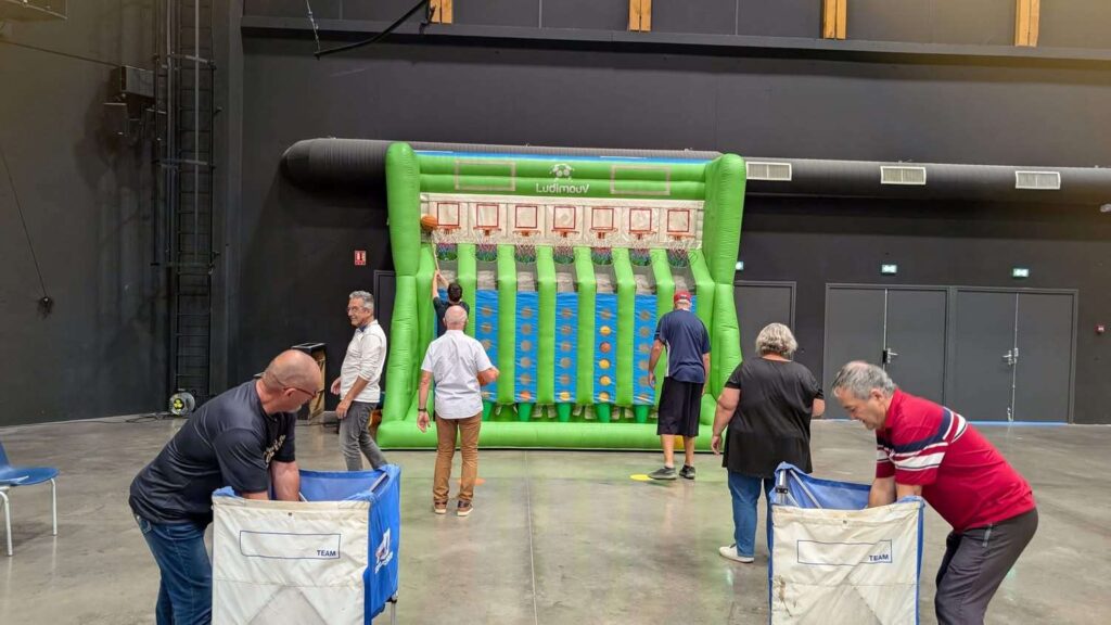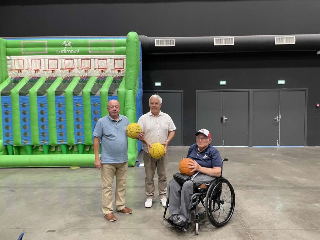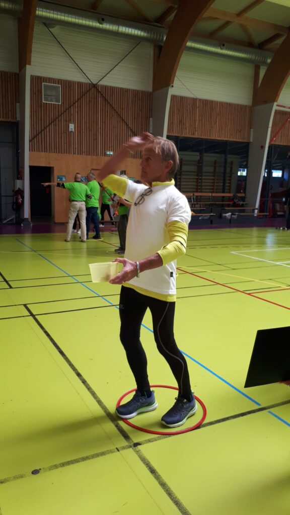 9 épreuves au programme : sarbacane, foot en marchant, relais marche, pétanque, basket..etc…