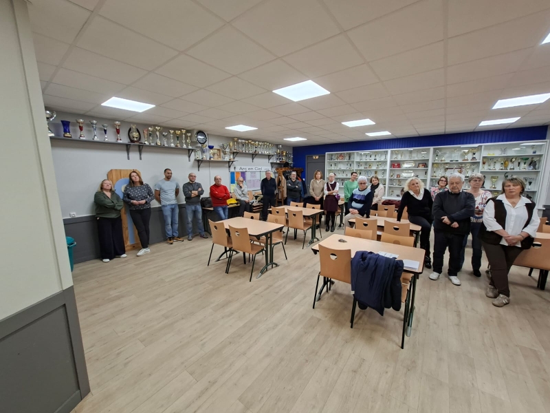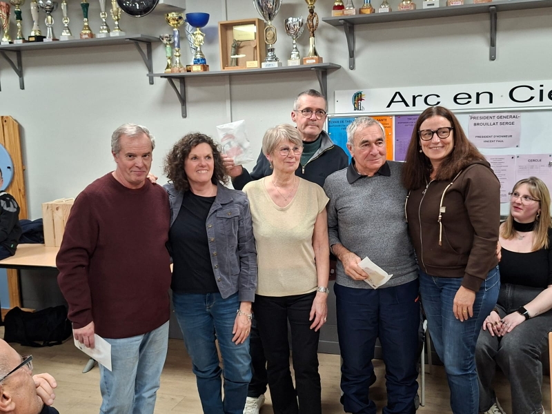 Ce jeudi 15/12, les dirigeants de l’Arc En Ciel ont tenu à remercier tous les bénévoles ayant participé au téléthon le dimanche 7 décembre 2025. Cette manifestation organisée par l’Arc En Ciel a permis la vente à emporter ou à manger sur place de 120 repas tripes. C’est donc un cheque de 1500,00 € correspondant au bénéfice réalisé qui a été remis  à Renée Peala responsable local du téléthon en présence de Veronique Romeyer adjointe aux sports et aux associations, des responsables et bénévoles de l’Arc En Ciel